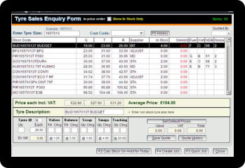 a potential customer calls back. The tyre enquiry screen is linked